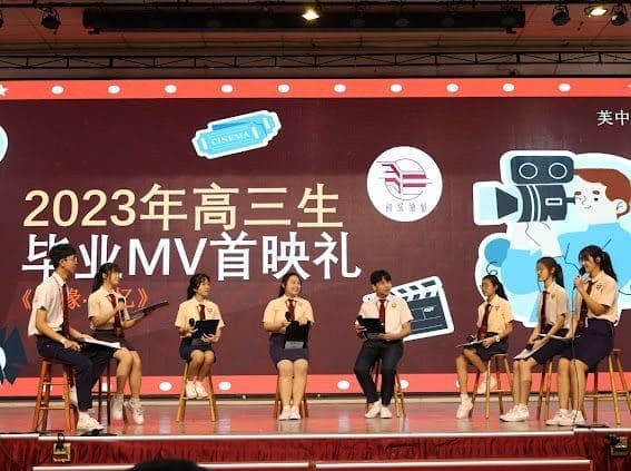如果你是芙中的学生,你会知道芙中初高中的教室都有固定的位置。因此,在拍摄扮演初中生部分的画面时,他们选择了位于“初中楼”的教室,而高中生的画面则在图书馆楼上的高三班级拍摄。